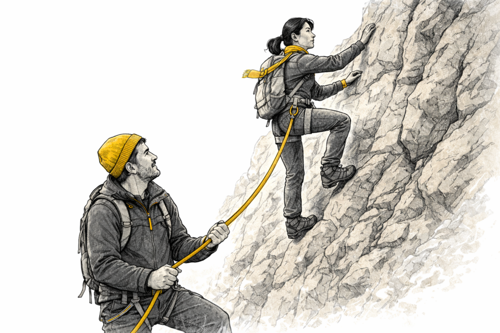 Manchmal brauchst du trotzdem jemanden am Seil.